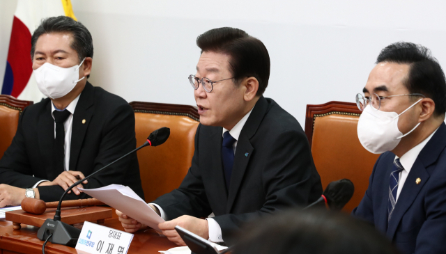 민주당 이재명 대표가 23일 국회에서 열린 최고위원회의에서 발언하고 있다. 김종호 기자