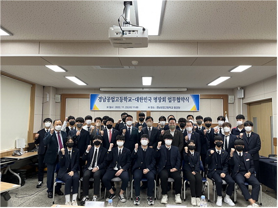 경남공업고등학교(교장 정도건)는 23일 (사)대한민국명장회(회장 홍종흔)·부산광역시지회(지회장 서정희)와 ‘경남공업고등학교 창의적 숙련기술 인재 양성’ 업무협약을 체결했다.