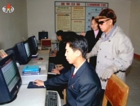2008년 김정일 국방위원장이 생전에 대학과 군부대의 사이버 교육장을 찾아 현장 지도를 하고 있다. 연합뉴스