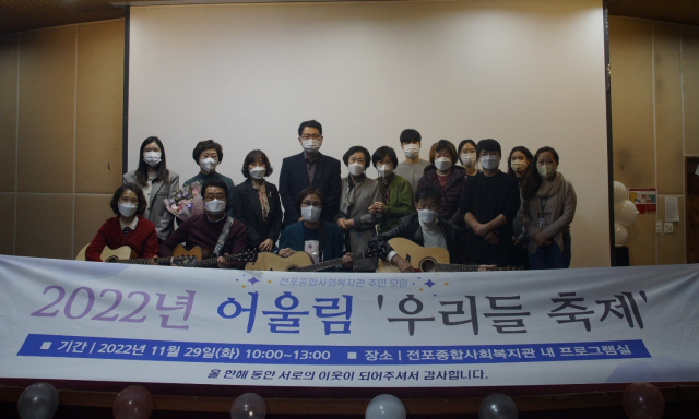 전포종합사회복지관(관장 오영석)은 29일 전포동 주민들이 모여 이웃 관계를 형성하는 프로그램인 주민모임 ‘어울림’의 1년간 활동을 마무리하는 ‘우리들 축제’를 열었다.