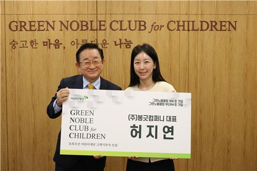 초록우산 어린이재단(회장 황영기)은 지난 28일 (주)봉긋컴퍼니 허지연 대표가 초록우산 어린이재단 고액기부자 모임인 ‘그린노블클럽’에 가입했다고 밝혔다.