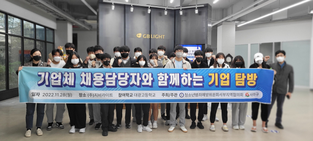 부산 사하구(구청장 이갑준)는 지난달 28일 강서구 범방동 소재 ㈜지비라이트에서 대광고등학교 재학생 25명이 참여한 가운데 기업체 채용 담당자와 함께하는 ‘특성화고 맞춤형 기업 탐방’을 실시했다.