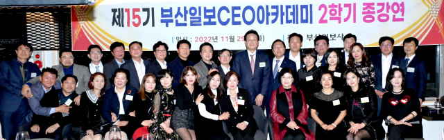 제15기 부산일보CEO아카데미는 올해 4월 5일 박형준 부산시장의 특강으로 개강해 김광석 한국경제산업연구원 경제연구실장, 이시우 프로골퍼 등 총 25차례의 다양한 분야의 강의와 체험 등이 진행됐다.
