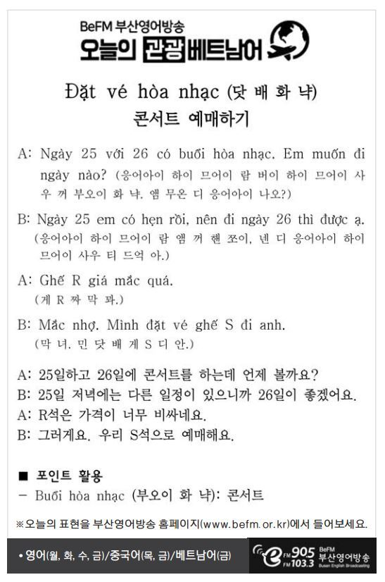 [관광 베트남어] 콘서트 예매하기