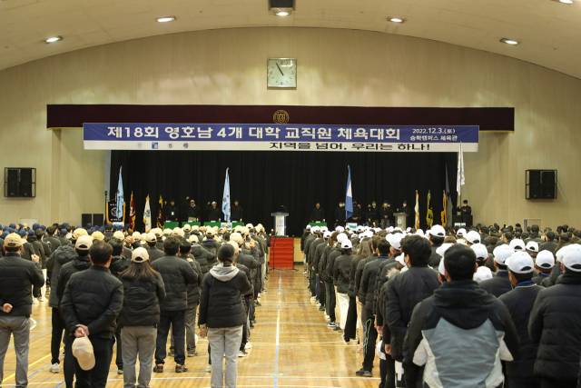 조 지부장은 “학령인구 감소에 따른 지방대학의 위기, 나아가 지방소멸과도 맞서 싸워야하는 역사적인 과업이 우리 앞에 있다”며 “영호남 4개 대학 교직원 체육대회는 교류와 화합의 장이기도 하지만 연대의 장이기도 하다. 지역을 대표하는 우리 4개 대학이 더욱 강하게 연대해 지방대학의 위기라는 거친 파도를 함께 이겨 나가자”고 말했다.