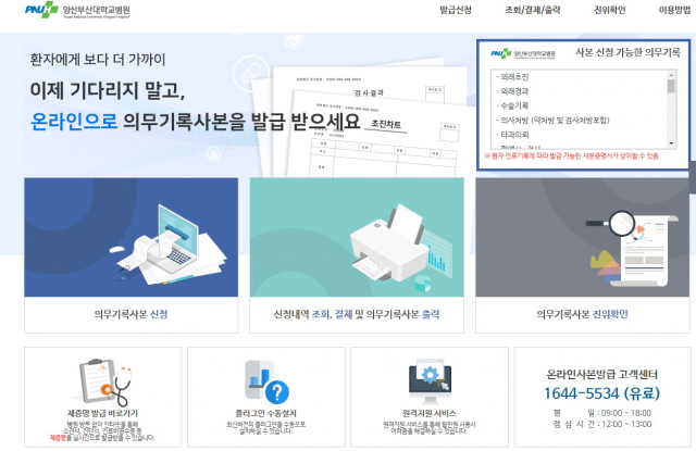 양산부산대병원, 온라인 의무기록사본 발급 서비스