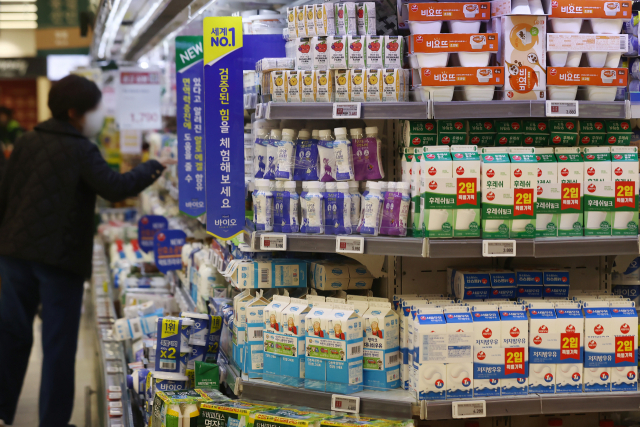 우유 원유(原乳) 가격 인상에 따라 흰 우유를 비롯한 유제품 가격이 오른 지난달 17일 서울의 한 대형마트에서 시민이 우유 제품을 고르고 있다. 연합뉴스