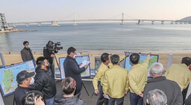 제17회 부산불꽃축제를 앞두고 6일 부산시와 경찰, 소방 등 축제 관계자들이 안전사고 예방 및 대응을 위해 광안리해수욕장 일대 현장점검을 하고 있다.