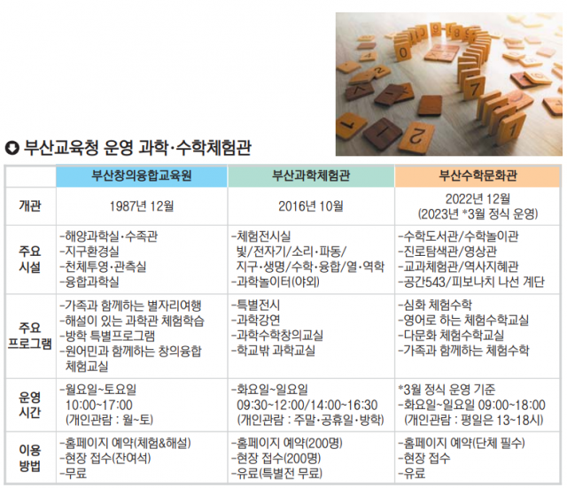 특히 평소 거리감이 있던 ‘과학’과 ‘수학’ 분야의 변모가 눈에 띈다. 부산교육청에서 운영하는 과학·수학 체험관만 모두 3곳. 올 겨울방학 이들 시설을 찬찬히 둘러보고 나면 몰라보게 달라진 우리 아이를 마주하게 될지 모른다. “과학이랑 놀고 싶어요.” “수학이랑 놀다 올게요.”
