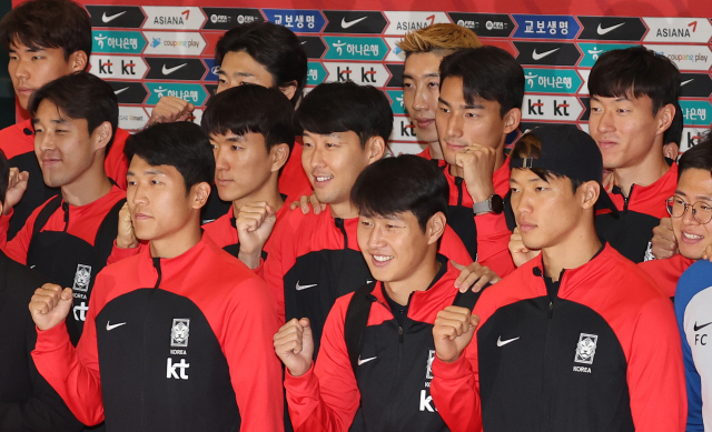 2022 카타르월드컵 16강을 달성한 뒤 7일 오후 인천국제공항 제1터미널을 통해 귀국한 대한민국 축구 국가대표팀 선수들이 환영 행사에서 파이팅을 외치고 있다. 연합뉴스