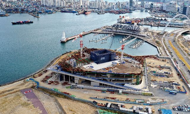 부산항 북항 1단계 사업부지 내 오페라하우스 공사 현장. 부산일보DB