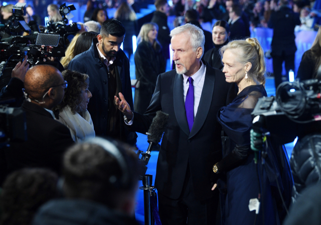 아바타 시사회 참석한 제임스 캐머론(왼쪽) 감독 여배우 수지 아미스. UPI연합뉴스