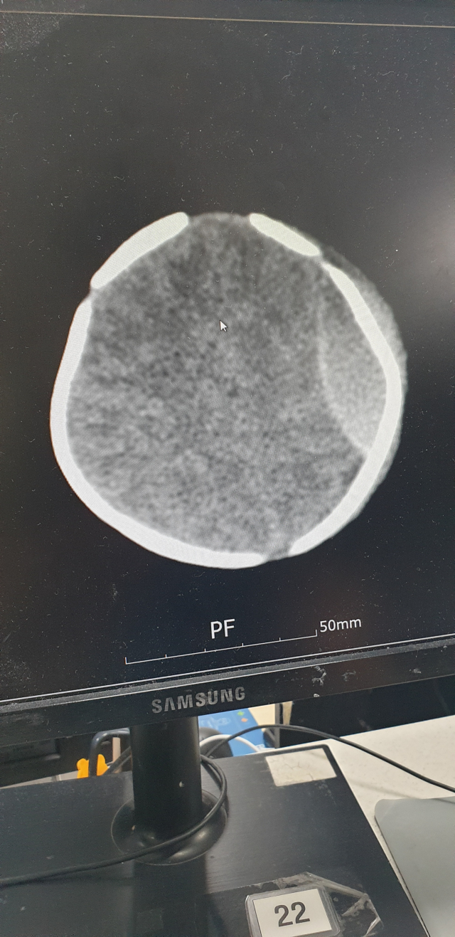 한편 같은 산후조리원에서 지난달 28일 생후 13일 신생아가 처치대에서 떨어져 머리를 다쳐 경찰이 간호조무사 D 씨를 업무상 과실치상 혐의로 입건해 수사하고 있다. 사진은 낙상 피해 아기 머리 CT 사진. 낙상 피해 부모 측 제공