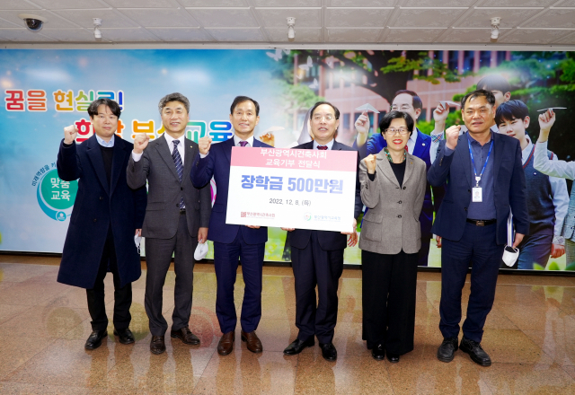 부산건축사회가 지난 8일 부산교육청을 방문, 지역 인재육성 장학금 500만 원을 기탁했다. 이 장학금은 부산공업고교와 경남공업고교 학생들을 위해 사용될 예정이다.