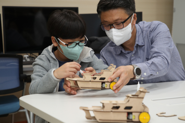 10일 부산 기장군 국립부산과학관에서 열린 ‘미래 해양도시 부산 페스티벌’에서 해양 사이언스 클래스에 참가한 학생들이 자율운항 선박 모형 만들기 체험을 하고 있다. 이재찬 기자 chan@