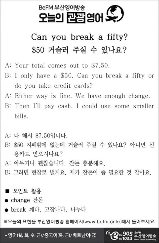 [관광 영어] 거슬러 주실 수 있나요?