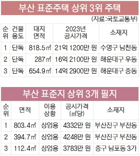 2023 부산 ‘표준 공시가’