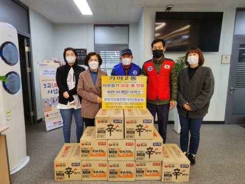 한국자유총연맹가야2동분회(회장 윤삼봉)는 12월 13일 부산진구 가야2동주민센터(동장 김현숙)를 방문하여 관내 어려운 이웃에게 전달하고 싶다며 라면 40개입 10상자(환가액 31만원)를 기탁하였다.