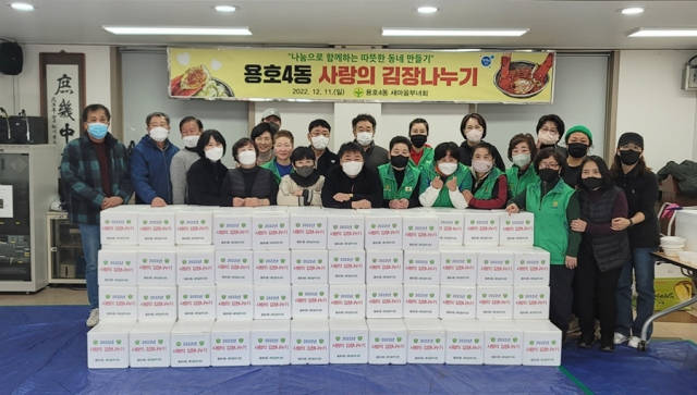 부산 남구 용호4동 새마을부녀회(회장 강호진)는 지난 11일 용호4동 행정복지센터(동장 김희정)에서 ‘2022년 사랑의 김장나누기’ 행사를 열었다.