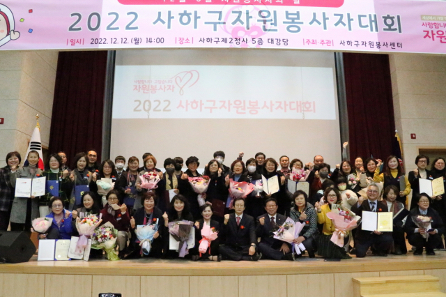 사)사하구자원봉사센터(센터장 황명옥)는 12일 사하구 제2청사 대강당에서 이갑준 구청장을 비롯해 자원봉사 유공 표창자 및 축하객 등 150여명이 참석한 가운데 '2022 사하구자원봉사자대회'를 개최했다.
