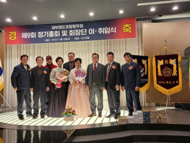 재부영도포항향우회(회장 강순옥)는 지난 16일 부산 중구 부산호텔에서 제9회 정기총회를 열고 박숙자 전임 회장과 강순옥 신임 회장의 이·취임식을 가졌다.