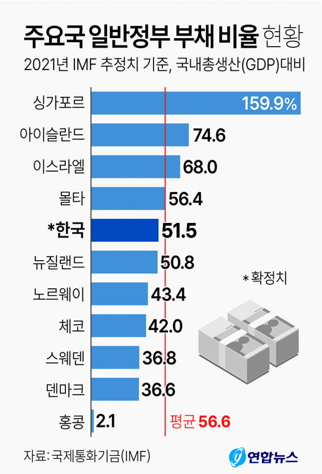 덴마크와 스웨덴 등 북유럽 비기축통화 4개국이 코로나19 사태 당시 확장 재정을 지난해 긴축으로 유턴하는 동안 한국은 정부 부채 비율이 사상 처음으로 50%를 돌파했다.