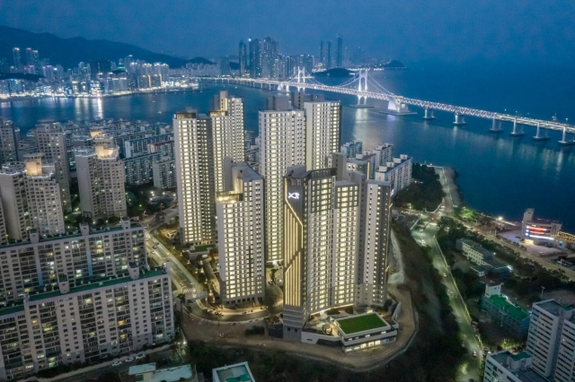 부산 최고 분양가를 기록한 남천자이의 분양 성적에 업계의 관심이 쏠린다. 남천자이의 야경. GS건설 제공