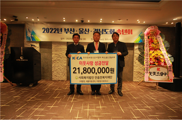 KICA 한국정보통신공사협회(회장 장민환)는 최근 아동의 복지증진을 위해 사회복지법인 안음전복지재단 새들원·새롬아동센터·아동일시보호소에 성금 2180만 원을 전달했다.