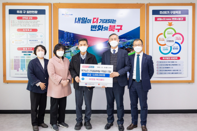 부산 북구(구청장 오태원)는 지난 19일 (사)무궁화복지월드 구포권(단장 이수완)에서 구청을 방문해 '독거노인 사랑의 건강음료 배달사업'에 사용해 달라며 후원금 500만원을 전달했다고 밝혔다.