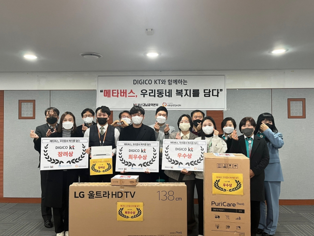 KT부산경남광역본부(본부장 김봉균 전무)는 최근 KT범일타워에서 부산사회복지협의회와 ‘메타버스, 우리 동네 복지를 담다’라는 주제로 경진대회를 개최했다.