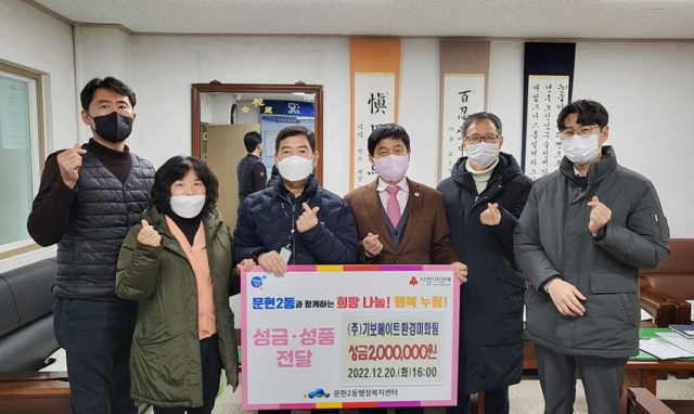 ㈜기보메이트 환경미화팀은 부산 남구 문현2동 어려운 이웃들을 위해 써달라며 1년간 재활용품을 팔아 얻은 수익금 200만 원을 기부했다.