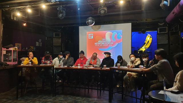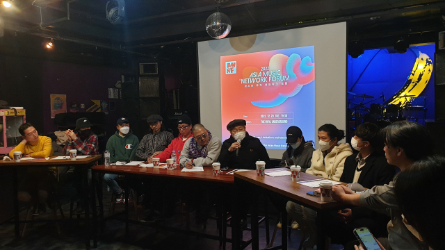 20일 오후 7시 30분 부산 남구 대연동 바이널언더그라운드에서 ‘2022 아시아 뮤직 네트워크 포럼’이 열렸다. 부산 인디 뮤지션과 공연 기획자뿐 아니라 일본과 대만 음악 관계자들이 참석했다. 사회를 맡은 김종군 민락인디트레이닝 센터장은 “코로나19로 침체된 공연이 다시 살아나도 부산 인디 음악 티켓 파워는 여전히 약한 느낌”이라며 “대처 방안을 찾고 해외 교류도 어떻게 다시 이어갈지 논의하려 한다”고 말했다.