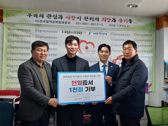 청년자원봉사단 위아원(부산경남 서부지부장 양희재, 동부연합회장 이종화)은 최근 ‘생명나눔 헌혈캠페인’을 통해 모은 헌혈증서 1000매를 (사)한국혈액암백혈병협회(회장 정만채)에 기부했다.
