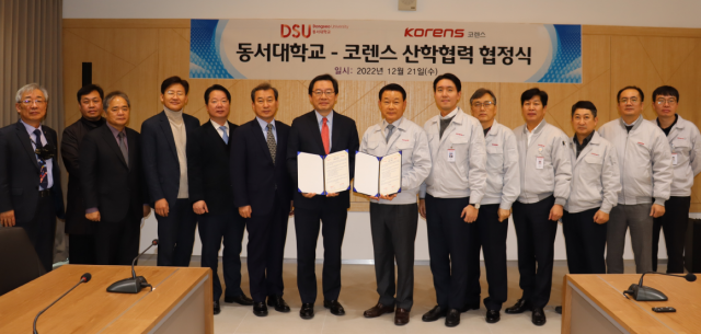 동서대학교(총장 장제국)와 코렌스(회장 조용국)가 21일 코렌스 EM 대회의실에서 친환경 미래 자동차 분야 기술개발 및 핵심인력 양성을 위한 산학협력 협정을 체결했다.