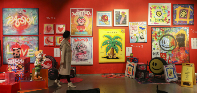 22일 부산 해운대구 더베이 101에서 성황리에 개최 중인 제2회 아트 인 더베이 ‘크리스마스의 선물’을 찾은 관람객들이 작품을 감상하고 있다. 강태구몬, 미미, 제제, 한상윤, 필독 등 MZ세대 작가 30인이 참여한 이번 전시는 25일까지 열린다.