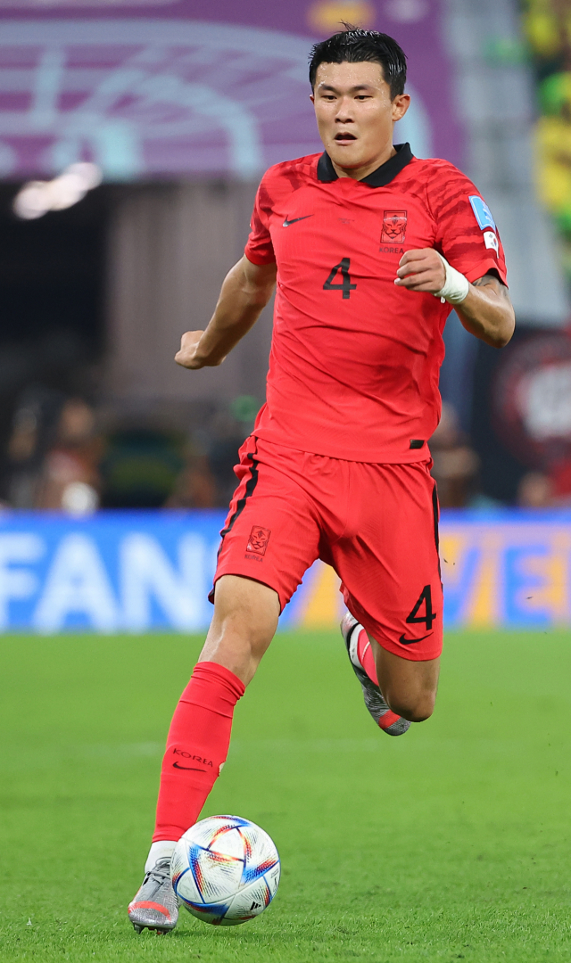 세리에A SSC 나폴리 중앙 수비수인 김민재가 잉글랜드 프리미어리그 맨체스터 유나이티드로부터 팀을 옮기는 논의가 급물살을 타고 있다. 지난달 28일 2022 카타르 월드컵 조별리그 H조 2차전 한국과 가나의 경기에서 김민재가 공을 다루고 있다. 연합뉴스