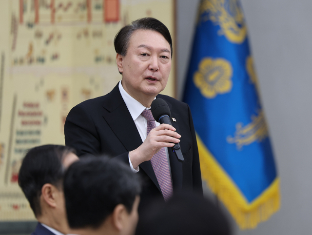 정치권의 중대선거구제 도입 논의가 윤석열 대통령의 언급으로 새 국면을 맞았다. 사진은 윤 대통령이 새해 첫날인 1일 서울 용산 대통령실 청사에서 국무위원들과 떡국으로 조찬을 함께 한 자리에서 발언하는 모습. 연합뉴스 제공.