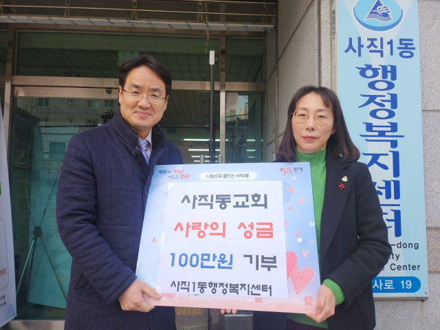 부산 사직동교회(담임 복기훈 목사)는 최근 저소득 홀몸 어르신을 위해 부산 동래구 사직1동 행정복지센터(동장 윤은경)에 성금 100만 원을 기탁했다.