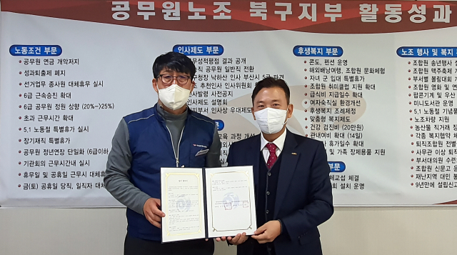 한국건강관리협회 부산서부검진센터(본부장 박창우)는 지난 9일 전국공무원노동조합 부산지역본부 북구지부(지부장 이주호)와 공무원 종합검진 업무협약을 체결했다.