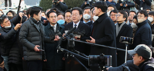 더불어민주당 이재명 대표가 지난 10일 성남FC 후원금 의혹 사건 피의자 신분으로 조사를 받기 위해 수원지검 성남지청에 출석할 때 민주당 의원들이 대거 동행해 여야 간에 '이재명 방탄' 논란을 빚었다. 연합뉴스
