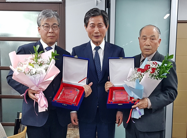 대한주택건설협회 부산시회의 추천으로 이원종합건설(주) 윤은규(오른쪽) 대표이사, (주)희종종합건설 이영종(왼쪽) 대표이사, (주)영인건설 박시훈 부장 이상 3개 회원사가 자랑스러운 건설인상을 수상했으며, 건축문화발전 유공자 표창은 대운종합건설(주) 최일기 대표이사가 받았다.