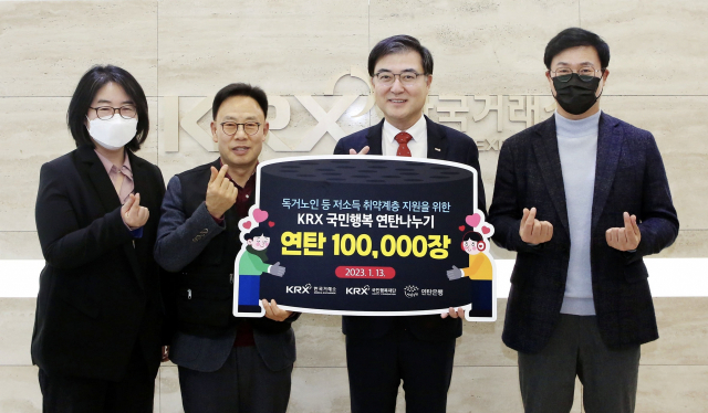 한국거래소(이사장 손병두·KRX)는 지난 13일 부산 본사에서 부산·서울 독거노인에게 연탄 10만 장을 후원하는 전달식을 가졌다.