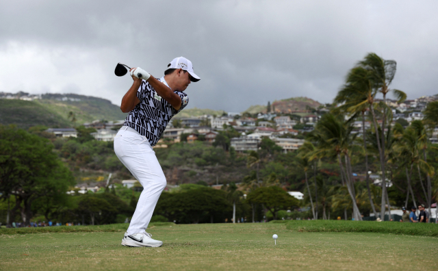 김시우가 16일(한국시간) 하와이 호놀룰루에서 열린 소니오픈 인 하와이 최종 라운드 14번 홀에서 티샷을 하고 있다. AFP연합뉴스
