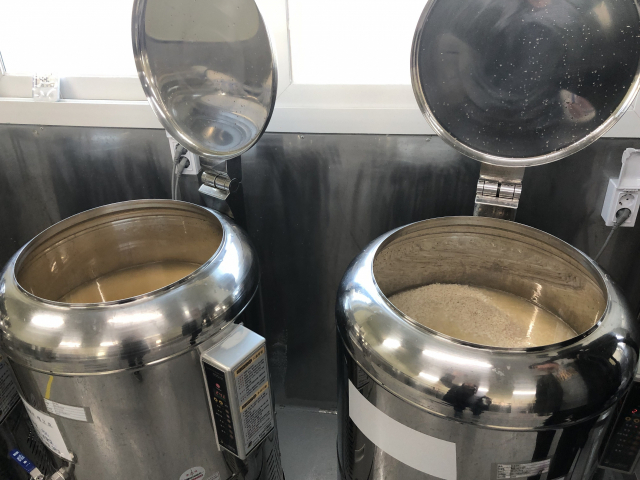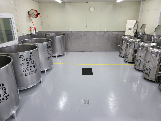 몬스터빌리지의 발효실 발효조에서 '설레' 막걸리용 술이 익어 가고 있다.