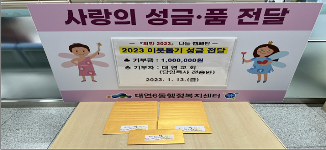 매년 이웃돕기 성금을 기탁해 온 대연교회는 이번 설 명절에도 소외계층을 위한 나눔을 실천했다.