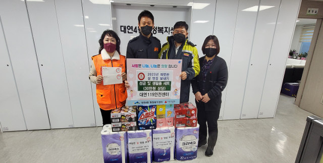 부산 남구 대연119안전센터(센터장 허갑일)는 16일 대연4동 행정복지센터(동장 김영미)를 방문해 현금 20만 원과 생필품(10만 원 상당)을 전달하였다.