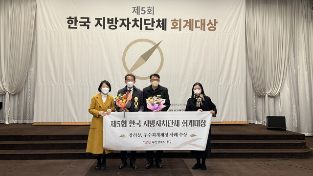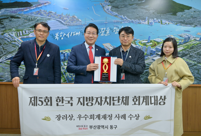 부산 동구청(구청장 김진홍)은 최근 제5회 한국 지방자치단체 회계대상 시상식에서 장려상과 우수 회계재정 사례 등 2개 부문에서 수상했다.
