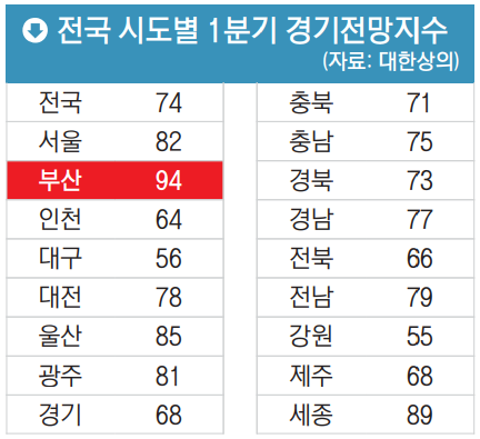 보고서에 따르면 2023년 1분기 부산 제조업의 체감 경기를 가늠할 경기전망지수(BSI)는 94다. 2021년 3분기 이후 6분기 연속 기준치(100)를 밑돈 수치다. 경기전망지수(BSI)는 100을 기준으로 한다. 100 이상이면 경기 호전을, 100 미만이면 경기 악화를 의미한다. 부산의 제조업 BSI 94는 수치상으로는 올해 초에도 예년 수준의 경기 호전을 기대하기 어렵다는 뜻이다.