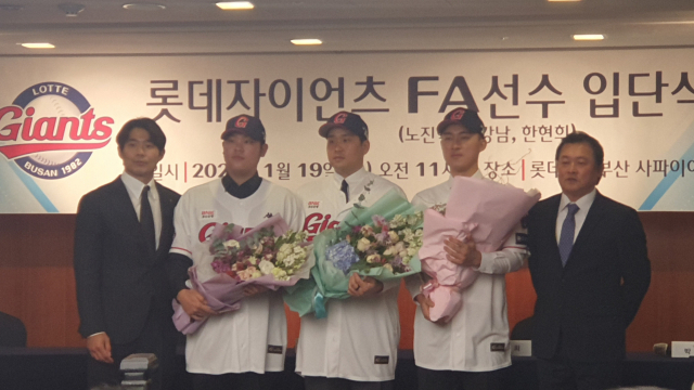 “롯데 가을야구 향한 든든한 지원군 왔다”…FA 노진혁·유강남·한현희 입단식