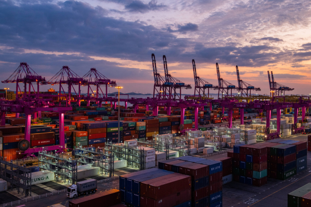 인천 신항(한진, 선광) 컨테이너 터미널 저녁 전경. IPA 제공